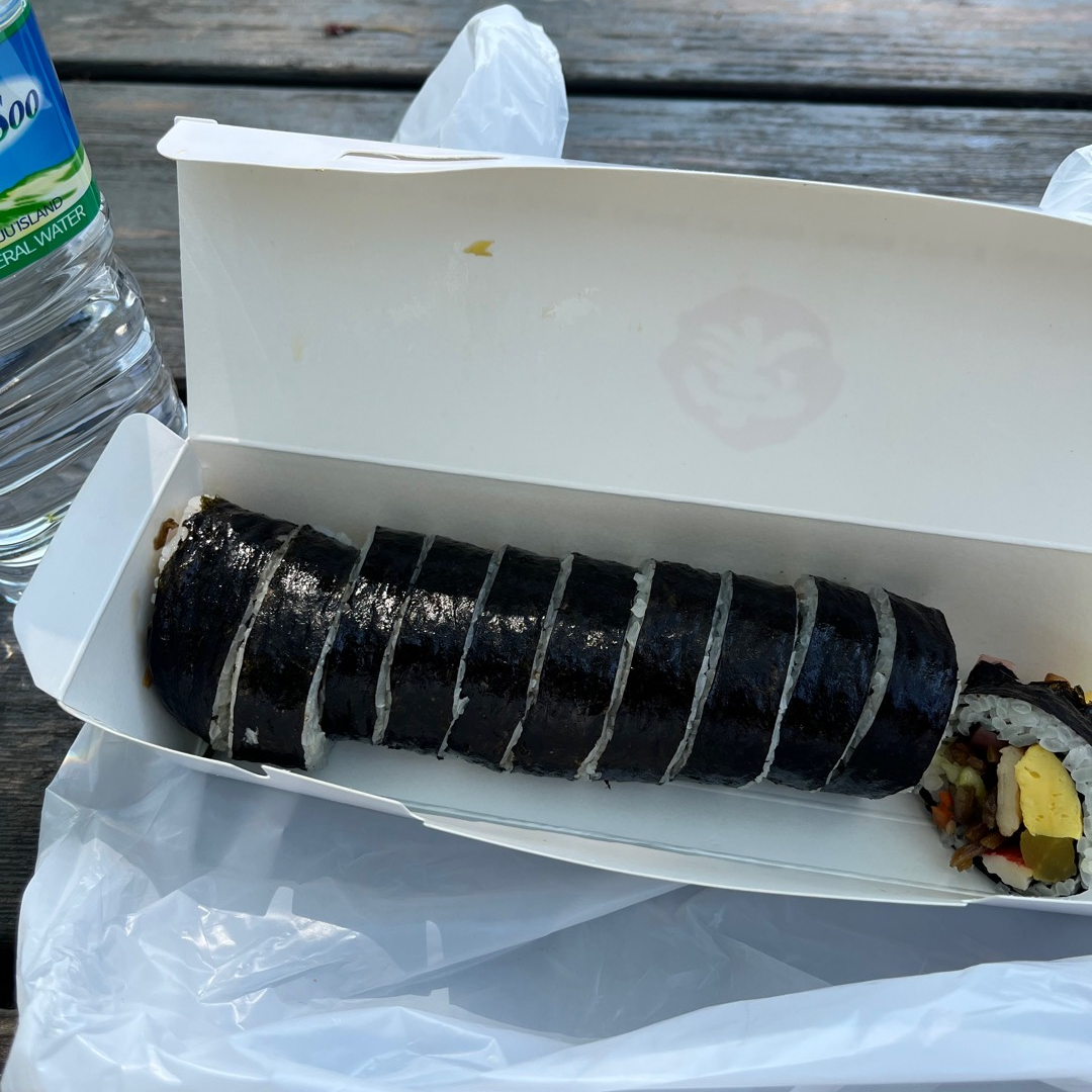 테이블에 잠시 앉아 먹은 김밥은 정말인지 꿀맛이었습니다!